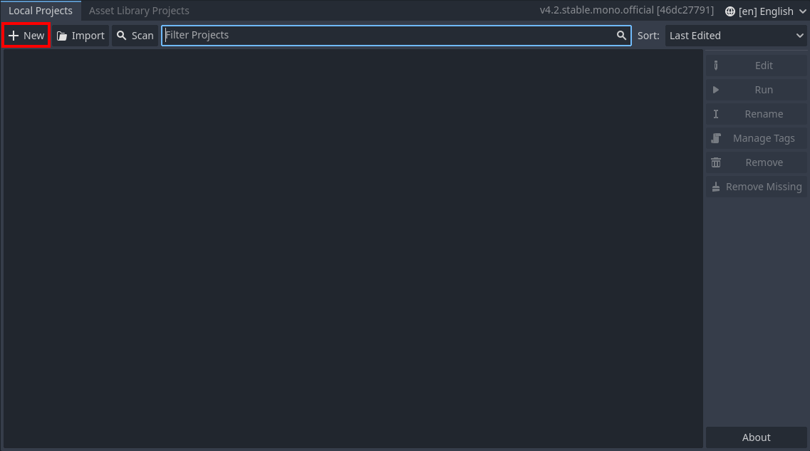 - 고도 엔진을 실행하여 Project Manager 창이 열리도록 한다.