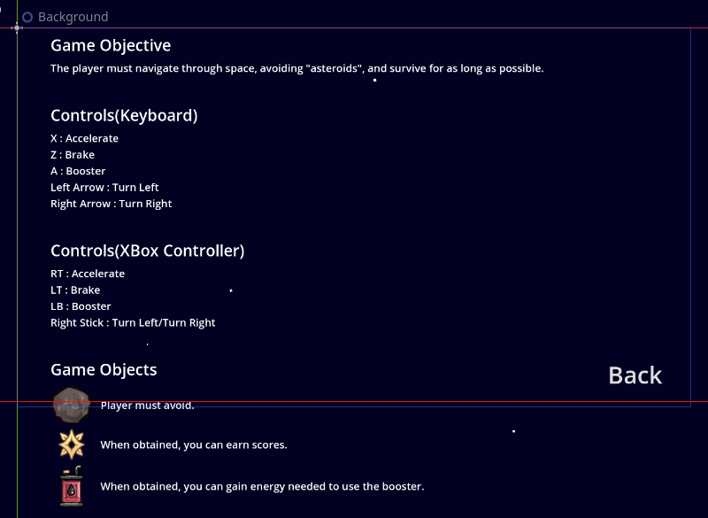- 메뉴에서 How to play를 선택하면 게임 조작법을 확인할 수 있도록 구현